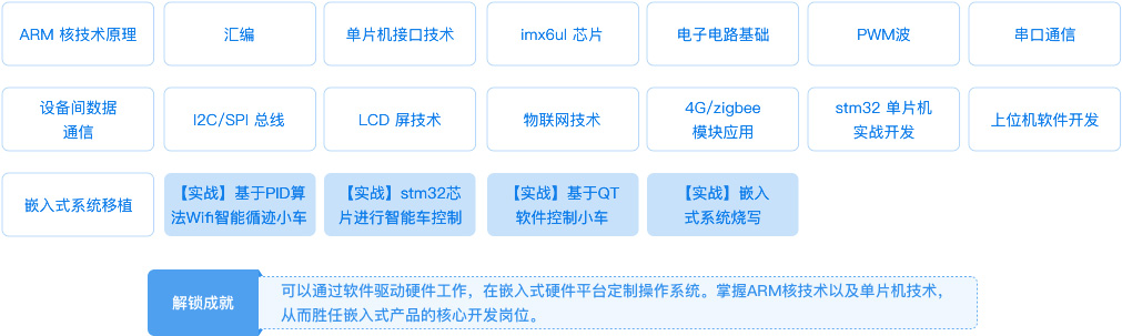 | 本阶段职业定位 | 嵌入式软件开发工程师、物联网开发工程师、Linux网络设备开发工程师(网关、防火墙、路由器开发) | ||